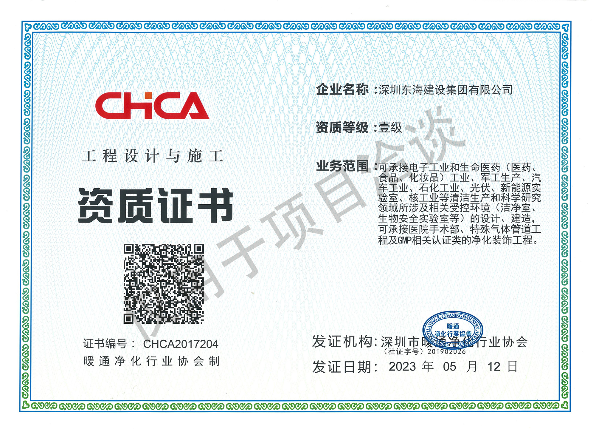 暖通凈化工程設(shè)計施工資質(zhì)證書