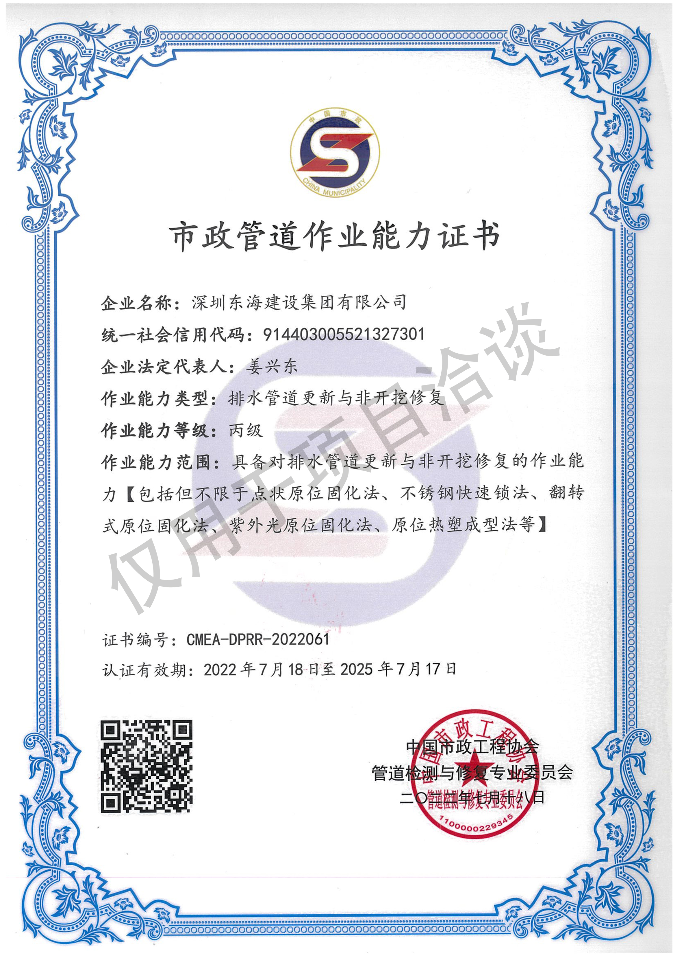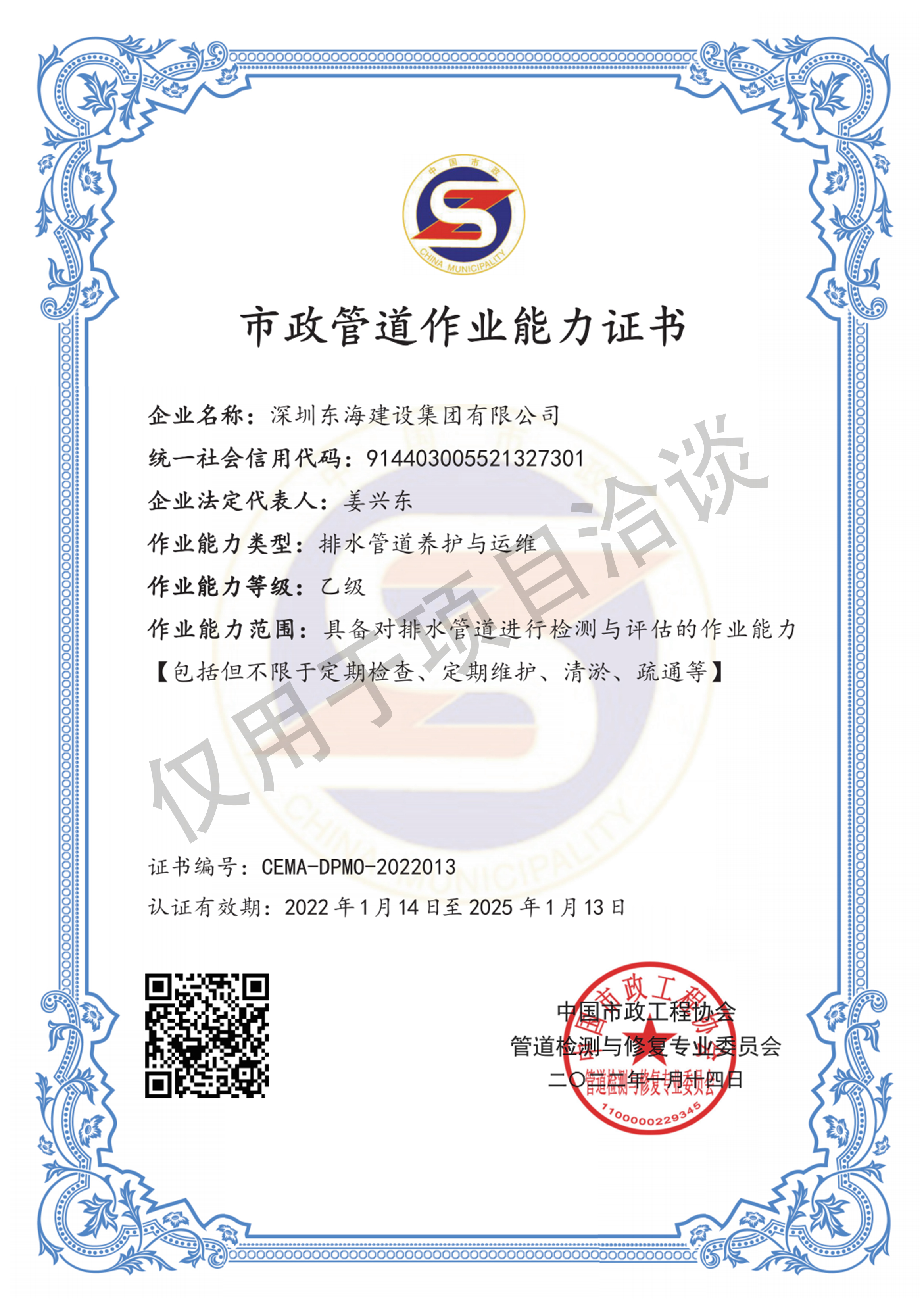 市政管道作業(yè)能力證書